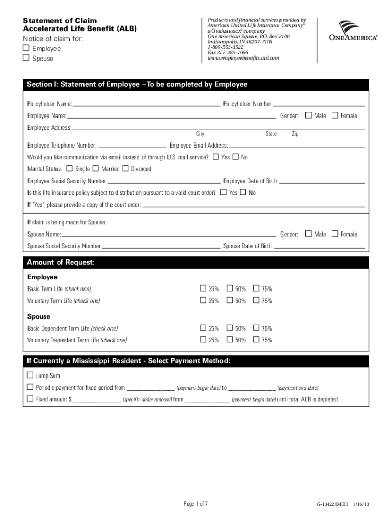 Products and financial services provided by American United Life Insurance Company a One America company Employee Benefits Claims Department P.O. Box 7106 Indianapolis, IN 462077106 18005533522 Fax