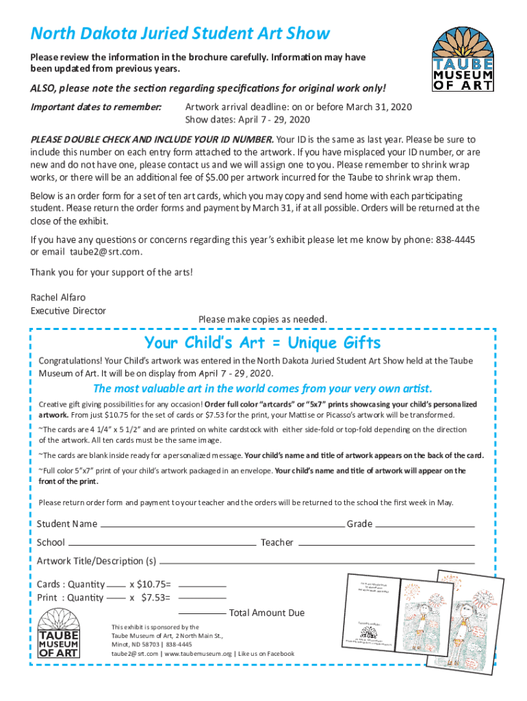 North Dakota Buried Student Art Show Please review the information in the brochure carefully. Information may have been updated from previous years. ALSO, please note the section regarding specifications