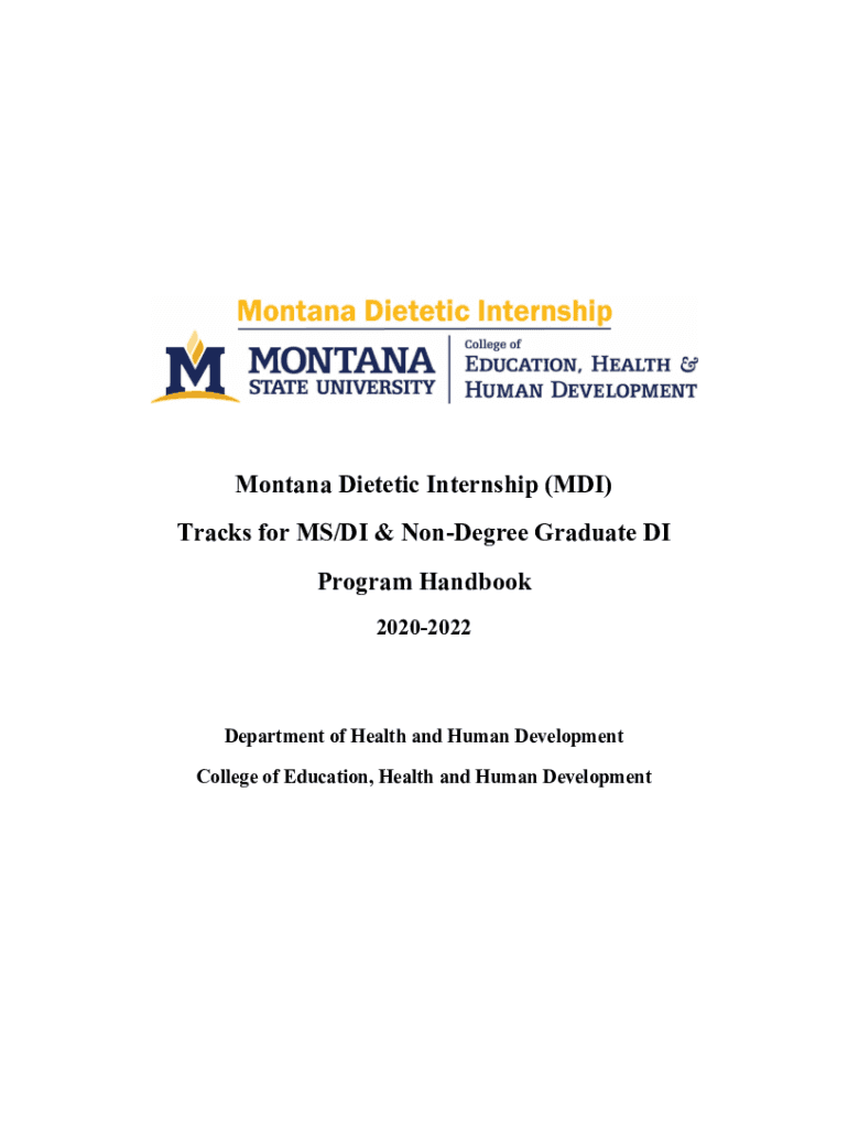 Montana Dietetic Internship (MDI) Tracks for MS/DI & NonDegree Graduate from DI Program Handbook 20202022Department of Health and Human Development College of Education, Health and Human DevelopmentContentsPageWelcome
