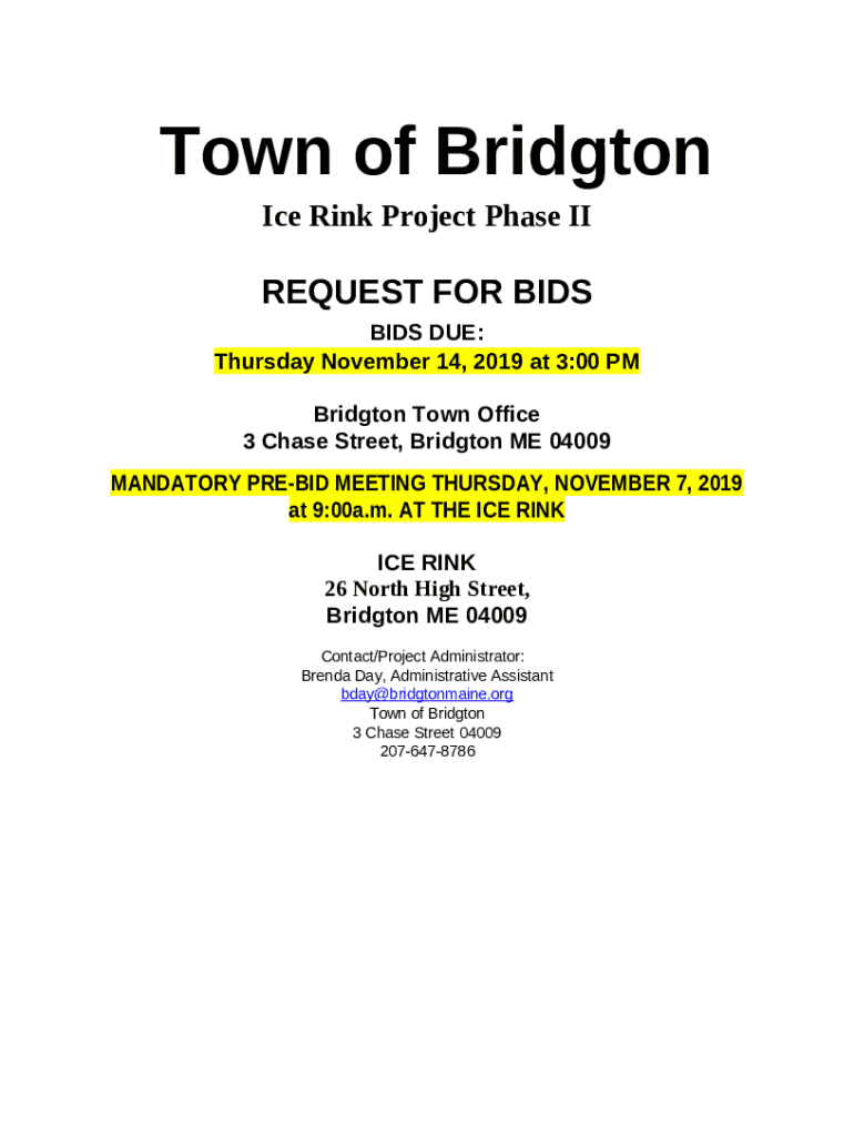 The bridgtonmaine.orgvenuebridgton-ice-rink-2Bridgton Ice Rink - Town of Bridgton, Maine is a document you can get completed and signed for certain needs. Then, it is provided to the actual addressee in order to provide some details of certain kinds. The completion and signing can be done in hard copy by hand or with a suitable solution e. g. PDFfiller. These applications help to send in any PDF or Word file without printing out. It also lets you customize it depending on the needs you have and put legit e-signature. Upon finishing, the user ought to send the bridgtonmaine.orgvenuebridgton-ice-rink-2Bridgton Ice Rink - Town of Bridgton, Maine to the respective recipient or several of them by mail and even fax. PDFfiller includes a feature and options that make your template printable. It has a variety of settings when printing out appearance. It doesn't matter how you file a document - physically or electronically - it will always look professional and organized. To not to create a new editable template from scratch all the time, turn the original document into a template. Later, you will have a customizable sample.
