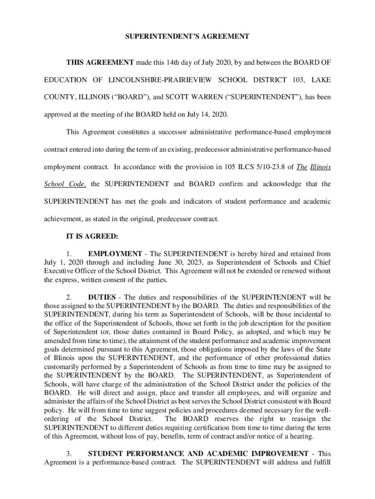 SUPERINTENDENTS AGREEMENTS AGREEMENT made this 14th day of July 2020, by and between the BOARD OF EDUCATION OF LINCOLNSHIREPRAIRIEVIEW SCHOOL DISTRICT 103, LAKE COUNTY, ILLINOIS (BOARD), and SCOTT