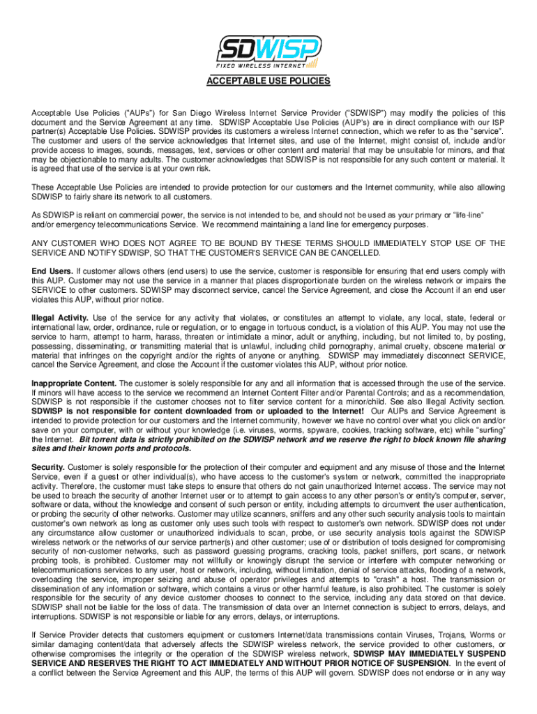 Get the free Acceptable Use Policy (AUP) Template For Public WiFiAcceptable Use Policy (AUP) Temp...