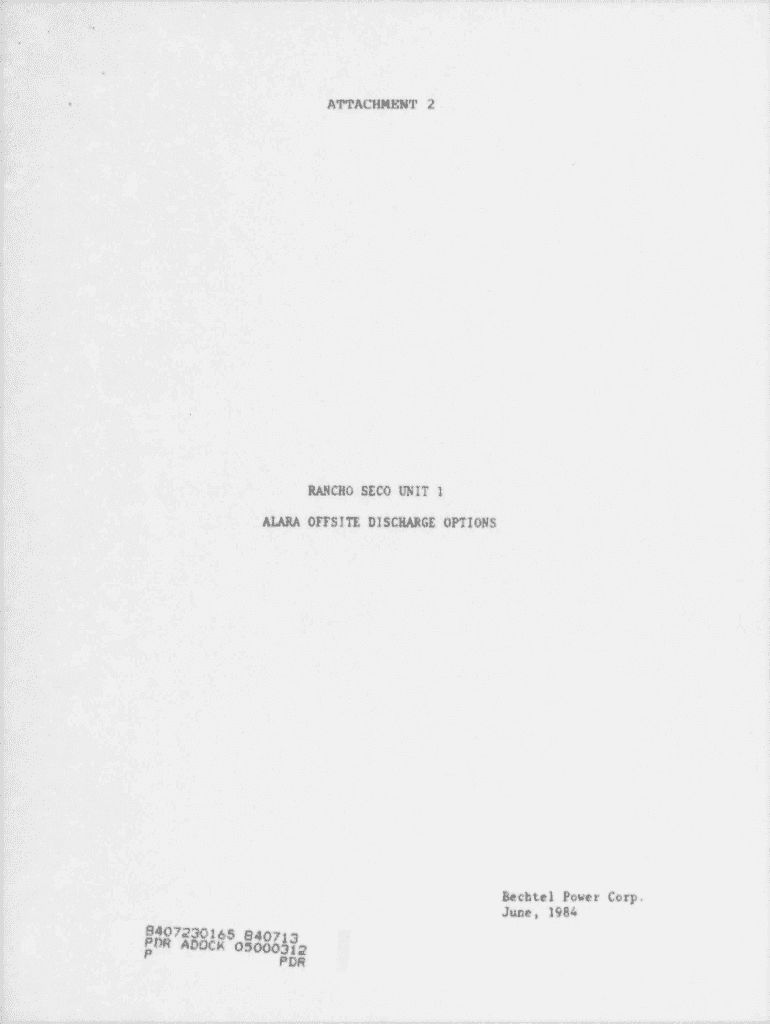 .__ _ _ ___.___ _ _ _ _. _, _ _ _. _ _ ___i. . .i\' \'. !*ATTACHMENT 2×i14;4,5.rancho SECT UNIT 1×CLARA 0FFSITE DISCHARGE OPTIONS1i: I!j. T!:11., 1r!\' i, :Bechtel Power Corp. June 1984: .8407230165