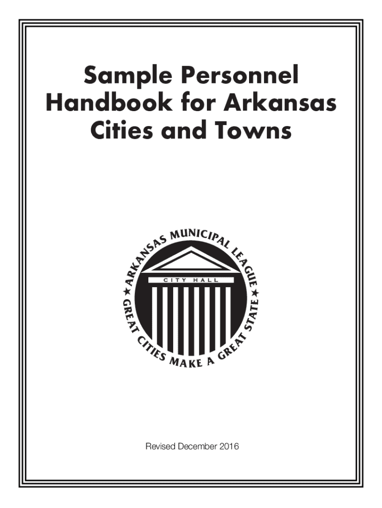SUN I C I PA S L AL GUARKEAANSample Personnel Handbook for Arkansas Cities and TownsEESACITTS TATEGREATIR MAKE A Revised December 2016Table of Contents INTRODUCTIONCHAPTER 3MESSAGE FROM THE ARKANSAS