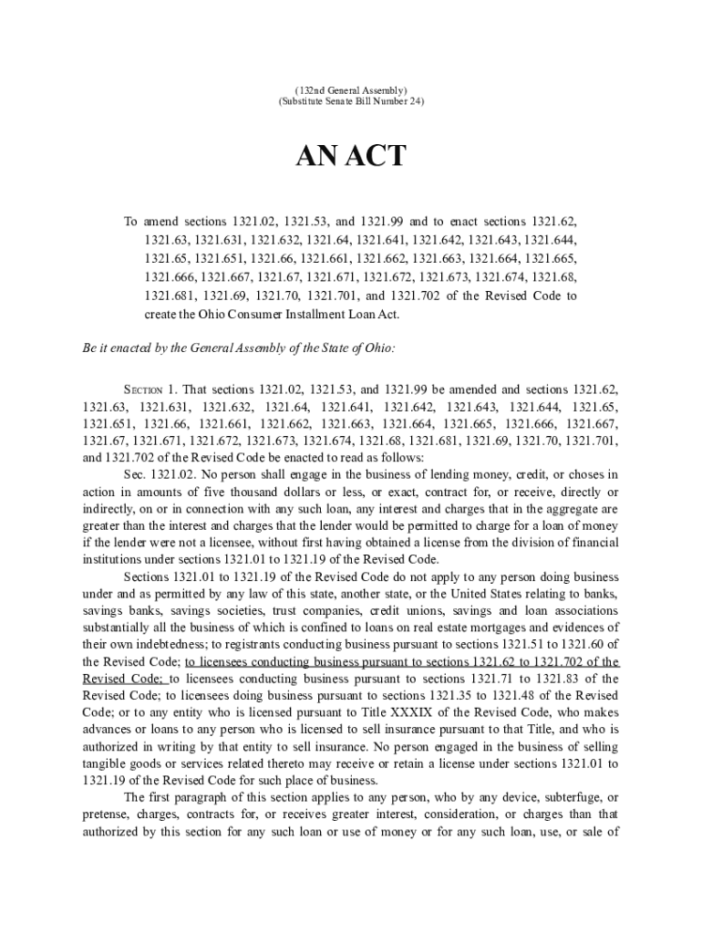 (132nd General Assembly) (Substitute Senate Bill Number 24)AN ACT To amend sections 1321.02, 1321.53, and 1321.99 and to enact sections 1321.62, 1321.63, 1321.631, 1321.632, 1321.64, 1321.641, 1321.642,