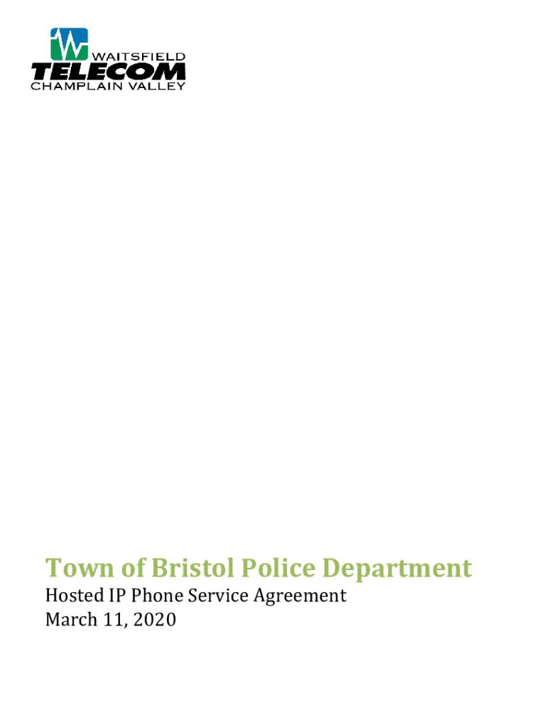 Town of Bristol Police Department Hosted IP Phone Service Agreement March 11, 2020Terms and Conditions This Equipment Rental Agreement (the Agreement) is by and between WHITFIELD AND CHAMPLAIN VALLEY