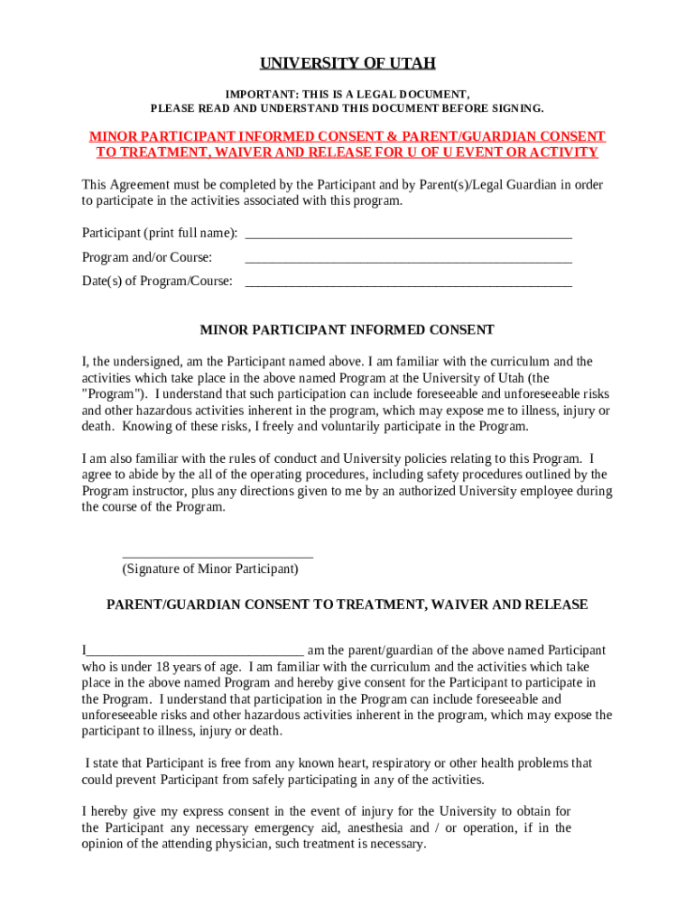 Instructions for the learningcenter.utah.eduresourcesdocumentsMINOR PARTICIPANT INED CONSENT & PARENT/GUARDIAN CONSENT ... form
