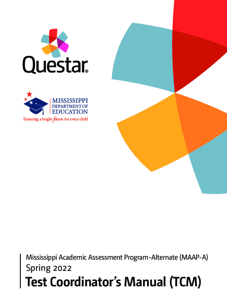 Mississippi Academic Assessment ProgramAlternate (MAPA)Spring 2022Test Coordinators Manual (TCM) Copyright 2022 by the Mississippi Department of Education All rights reserved. No part of this publication