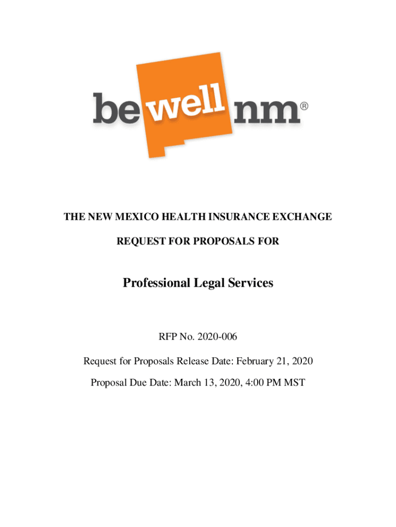 THE NEW MEXICO HEALTH INSURANCE EXCHANGE REQUEST FOR PROPOSALS Nonprofessional Legal Services RFP No. 2020006 Request for Proposals Release Date: February 21, 2020, Proposal Due Date: March 13, 2020,