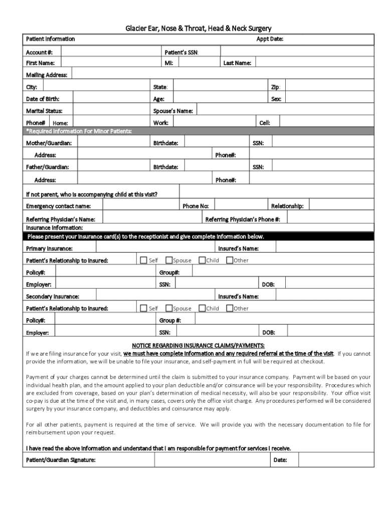 Fill out your wwwglacierentcliniccomwp-contentuploadsglacier ear nose ampamp online with pdfFiller!