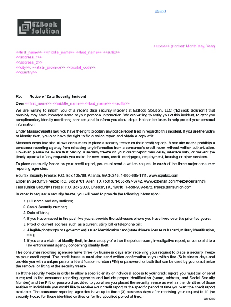 25850Date (Format: Month Day, Year) first×name middle×name last×name suffix address×1 address×2 city, state×province postal×code country Re:Notice of Data Security Incident Dear first×name
