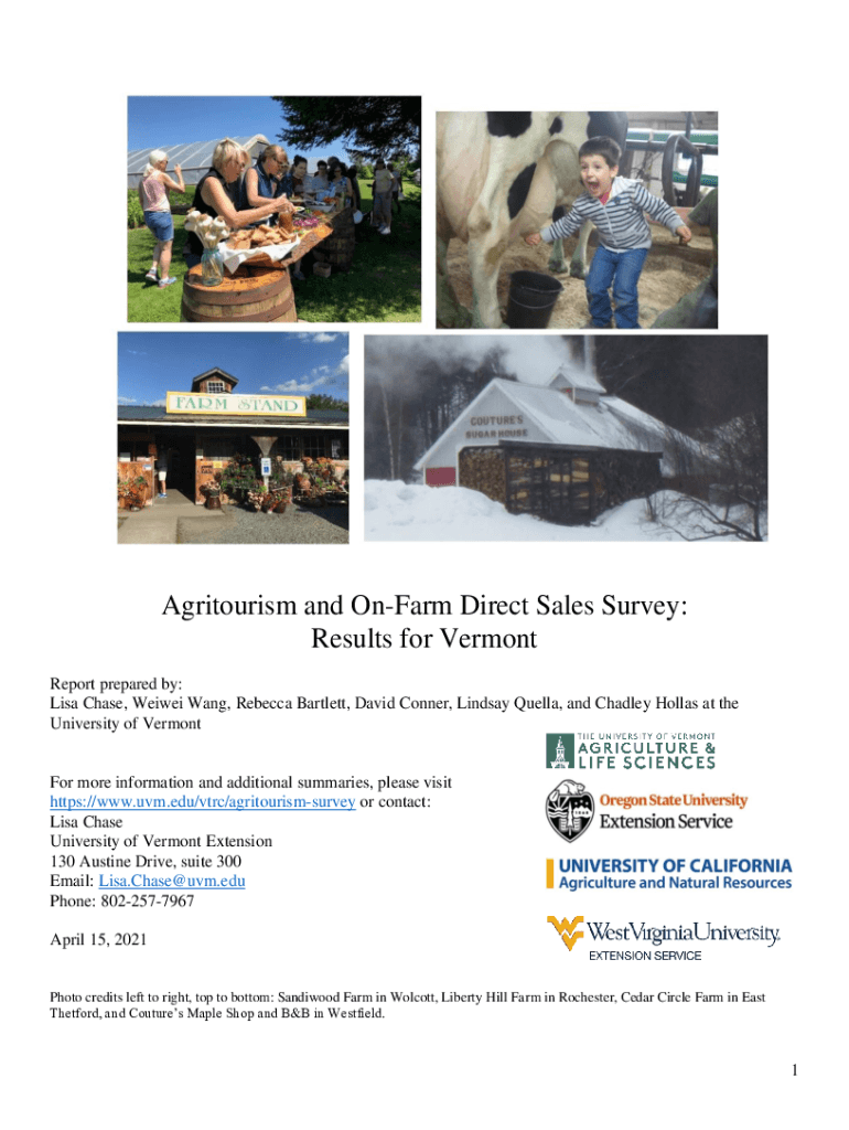wwwuvmeduvtsurveyreportagritourism and on-farm direct is a survey report that collects data on agritourism activities and on-farm direct sales in the state of Vermont.