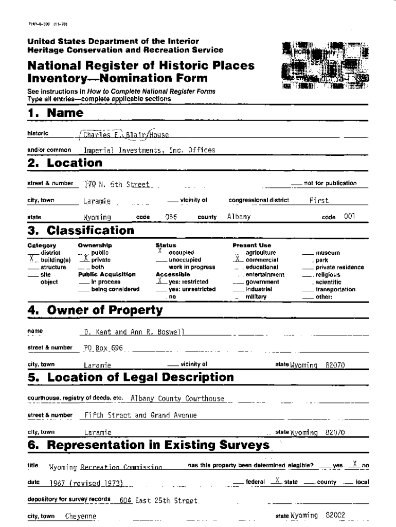 FHR8300(1178)United States Department of the Interior Heritage Conservation and Recreation ServiceNational Register of Historic Places Inventory Nomination Form See instructions in How to Complete