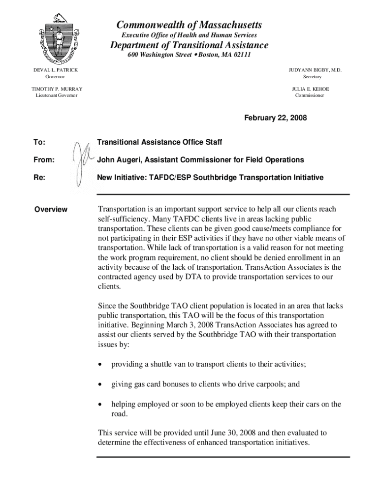 Commonwealth of Massachusetts Executive Office of Health and Human ServicesDepartment of Transitional Assistance 600 Washington Street y Boston, MA 02111DEVAL L. PATRICK GovernorJUDYANN BIXBY, M.D.