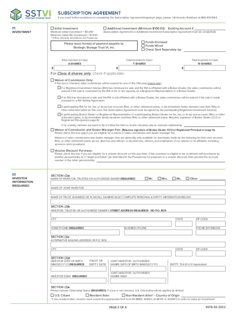 APPENDIX A SUBSCRIPTION AGREEMENT INSTRUCTIONS TO Investors person(s) desiring to subscribe for shares of common stock (the Shares) in Strategic Storage Trust VI, Inc. (the Company) should carefully