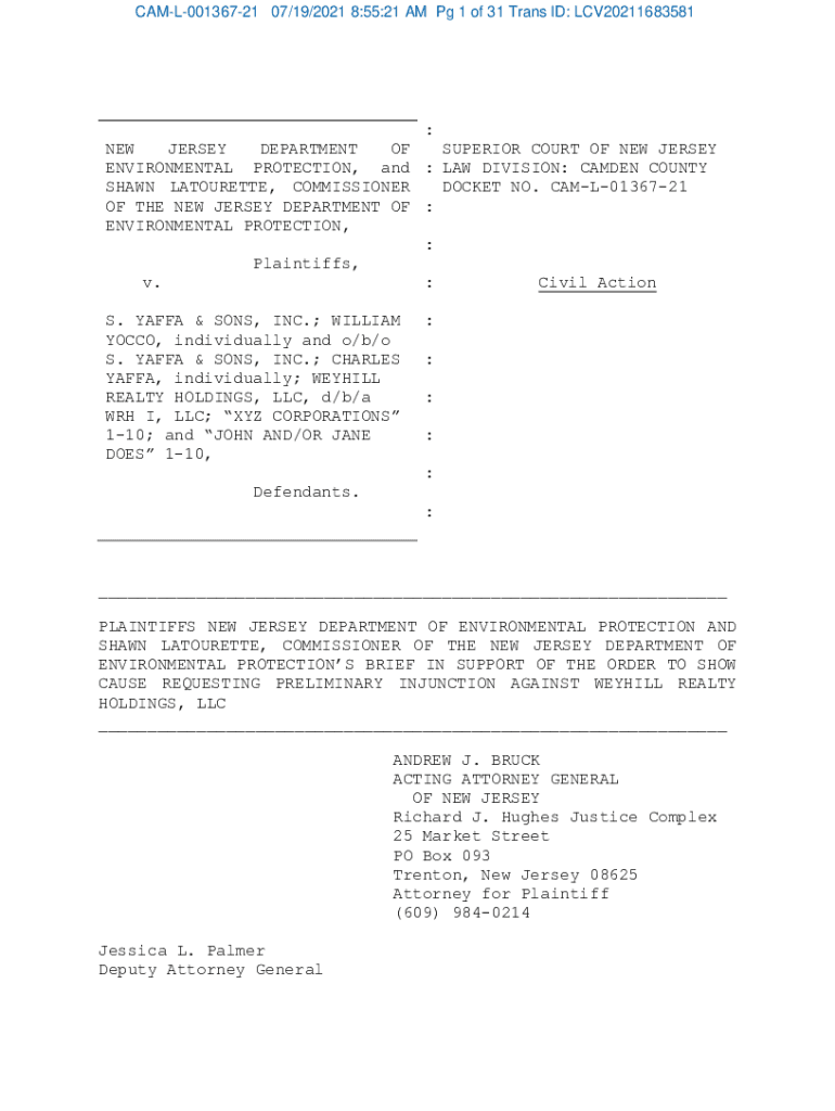 CAML00136721 07/19/2021 8:55:21 AM Pg 1 of 31 Trans IDs: LCV20211683581: NEW JERSEY DEPARTMENT OF SUPERIOR COURT OF NEW JERSEY ENVIRONMENTAL PROTECTION, and : LAW DIVISION: CAMDEN COUNTY SHAWN TOURETTE,