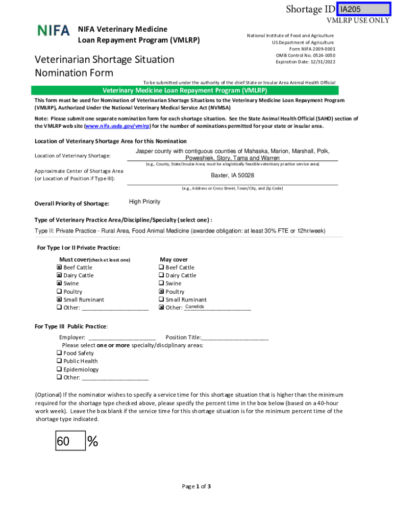 Get the free nifa.usda.gov sites defaultVmlrp shortage nom form - nifa.usda.gov - nifa usda
