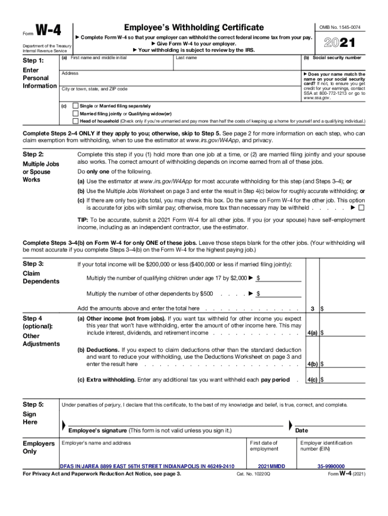FormW4Employees Withholding Certificate Department of the Treasury Internal Revenue Services 1: Enter Personal Information OMB No. 15450074Complete Form W4 so that your employer can withhold the correct