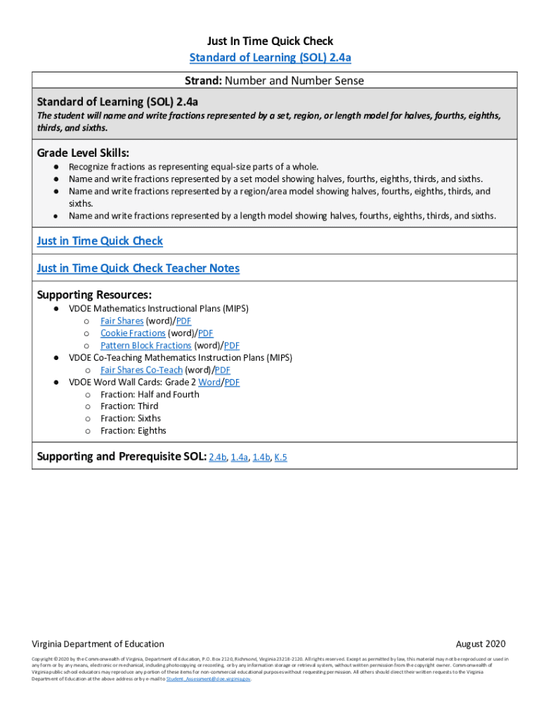 Get the free Just In Time Quick Check Standard of Learning (SOL) 2.4a Strand ...