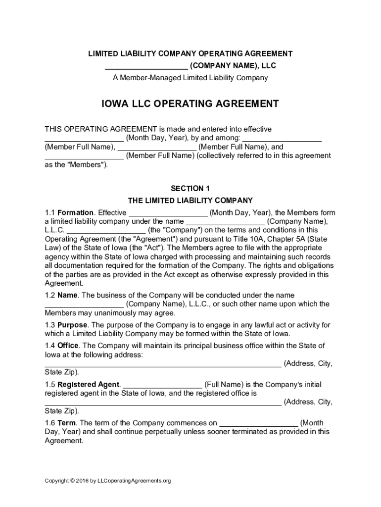 Get the free Iowa Multi Member LLC Operating Agreement Template