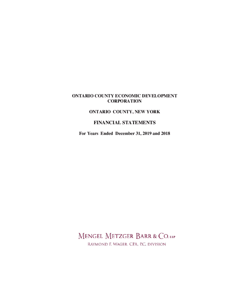 ONTARIO COUNTY ECONOMIC DEVELOPMENT CORPORATION ONTARIO COUNTY, NEW YORKFINANCIAL STATEMENTS For Years Ended December 31, 2019, and 2018TABLE OF CONTENTSPAGE Independent Auditors Report12Statement