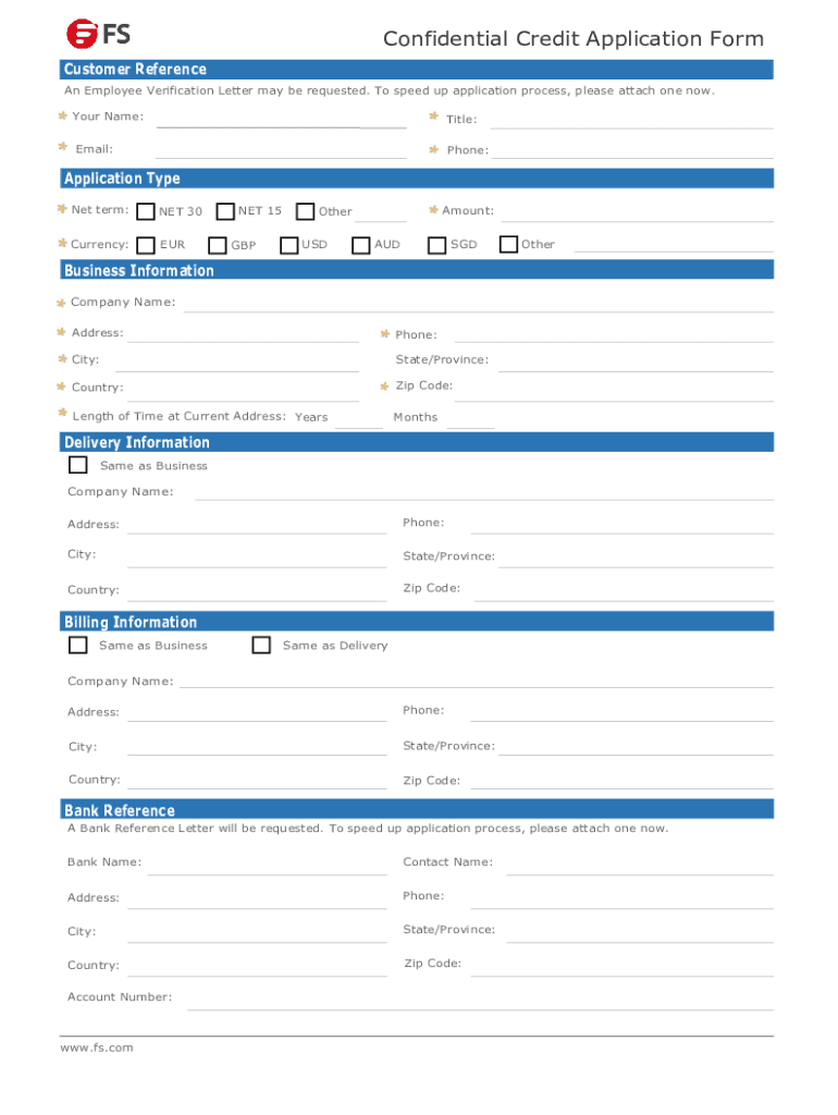 Confidential Credit Application Form Customer Reference An Employee Verification Letter may be requested. To speed up application process, please attach one now. Your Name:Title:Email:Phone:Application