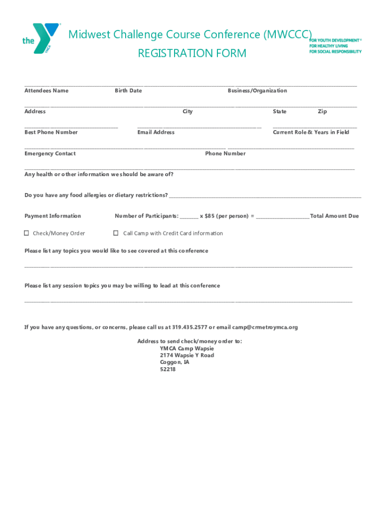 Get the free PDF Midwest Challenge Course Conference (MWCCC) - YMCA