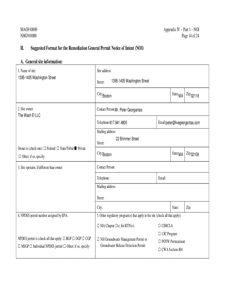 NOTICE OF INTENT FOR DISCHARGE PURSUANT TO MASSACHUSETTS REMEDIATION GENERAL PERMIT MAG9100000 13951405 WASHINGTON STREET BOSTON, MASSACHUSETTS JANUARY 5, 2022Prepared For: United States Environmental