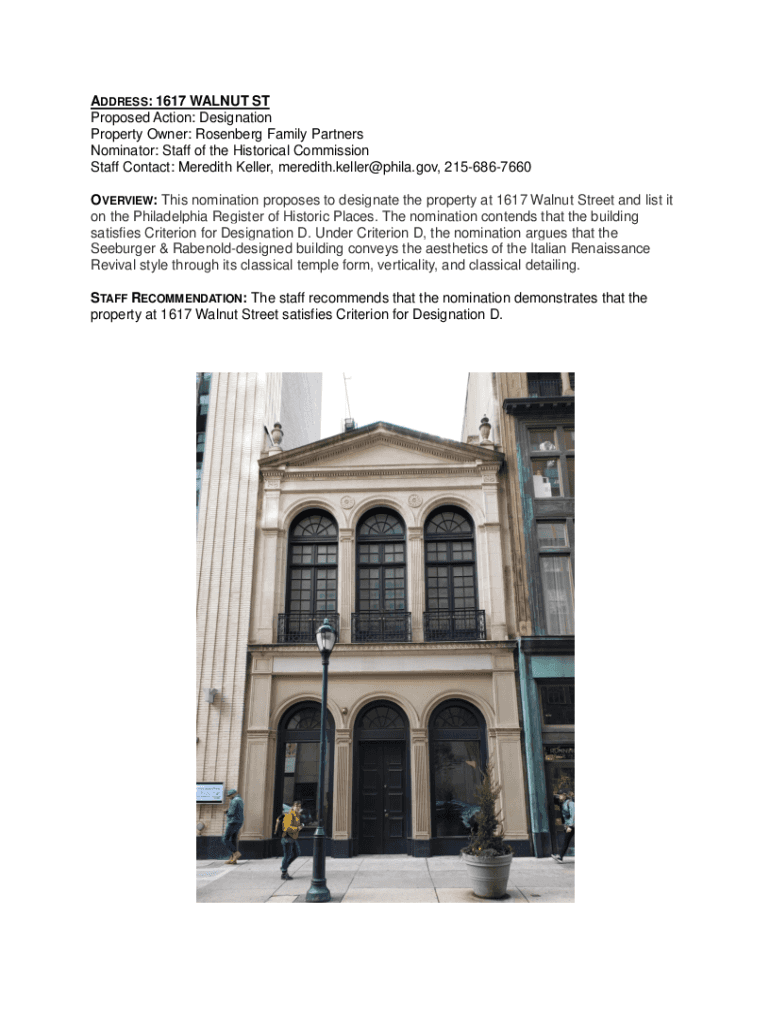 Get the free www.phila.gov1617-Walnut-St-nominationADDRESS: 1617 WALNUT ST Proposed Action: Desig...