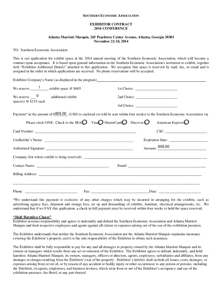 J.R. Clark SecretaryTreasurer 4234254118 4234255218 Fax sea×UTC.dummy 28, 2014Dear Exhibitor/Advertiser: The 84th Annual Conference of the Southern Economic Association will be held on November 2224,