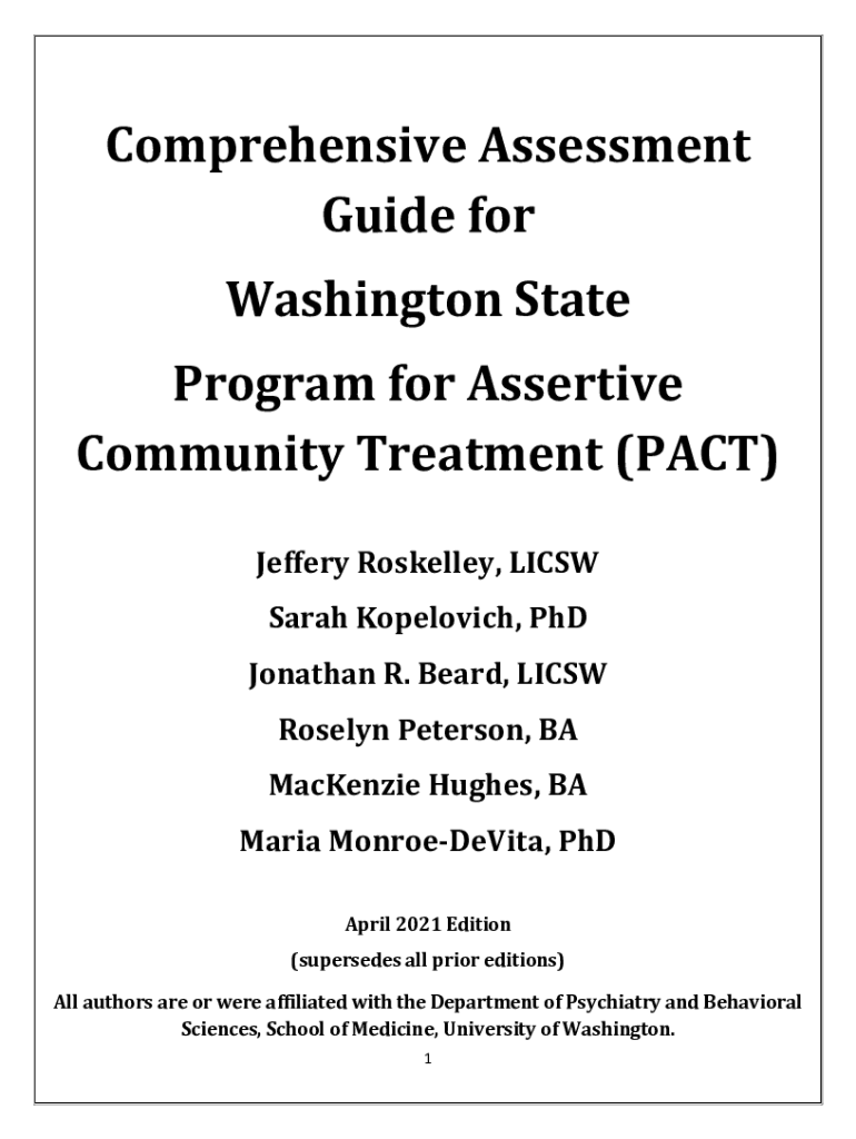 Comprehensive Assessment Guide for Washington State Program for Assertive Community Treatment (PACT) Jeffery Roselle, LCSW Sarah Kopelovich, PhD Jonathan R. Beard, LCSW Roselyn Peterson, BA MacKenzie