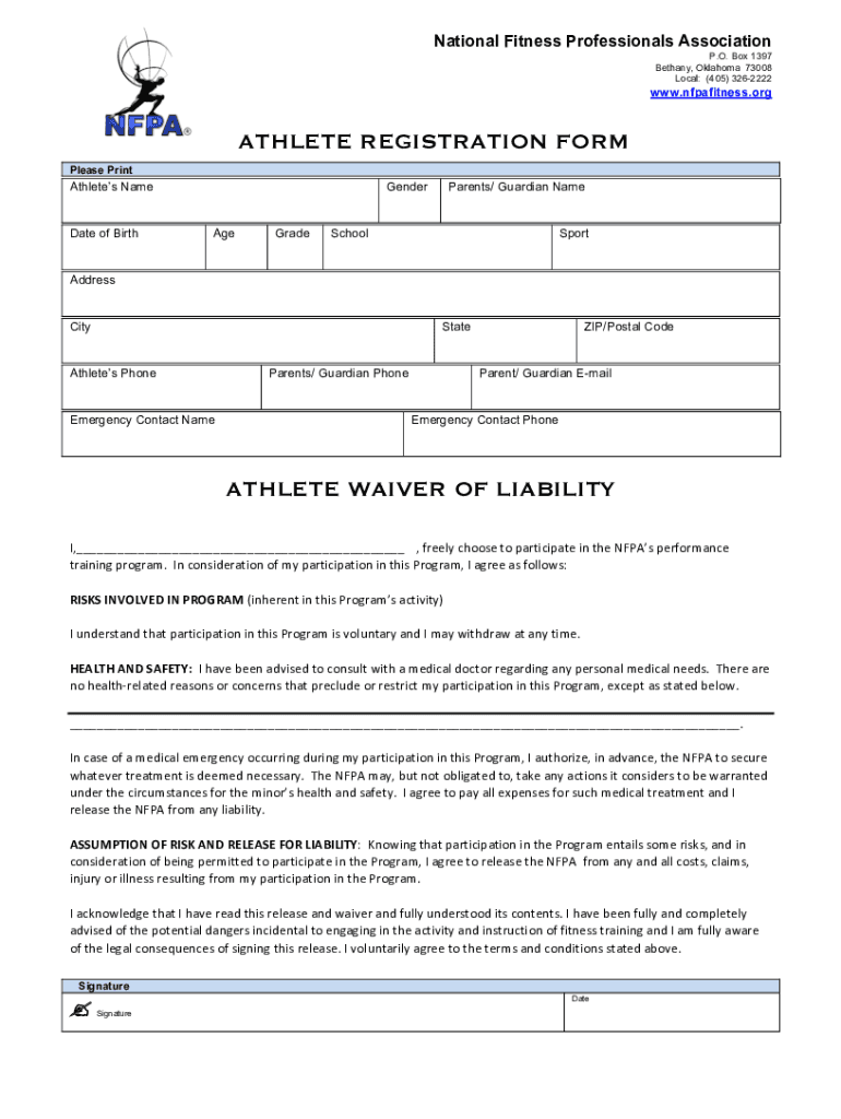 National Fitness Professionals Association P.O. Box 1397 Bethany, Oklahoma 73008 Local: (405) 3262222www.nfpafitness.triathlete REGISTRATION FORM Please Pentathletes Name Date of BirthGenderAgeGradeParents/