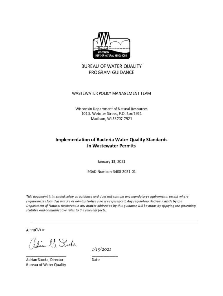 Get the free BUREAU OF WATER QUALITY PROGRAM GUIDANCE ... - dnr wi