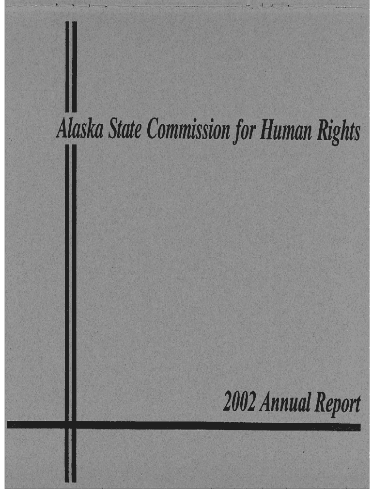 \'., Alaska State Commission for Human Rights, .,.\'., ... ...\'\'...\'\” I, J! \'. Report ___...........___20f!2.×. Annual ___ ...__., I\'.\', 0I×April 14, 2002STATE OF ALASKAHUMAN RIGHTS C COMMISSION