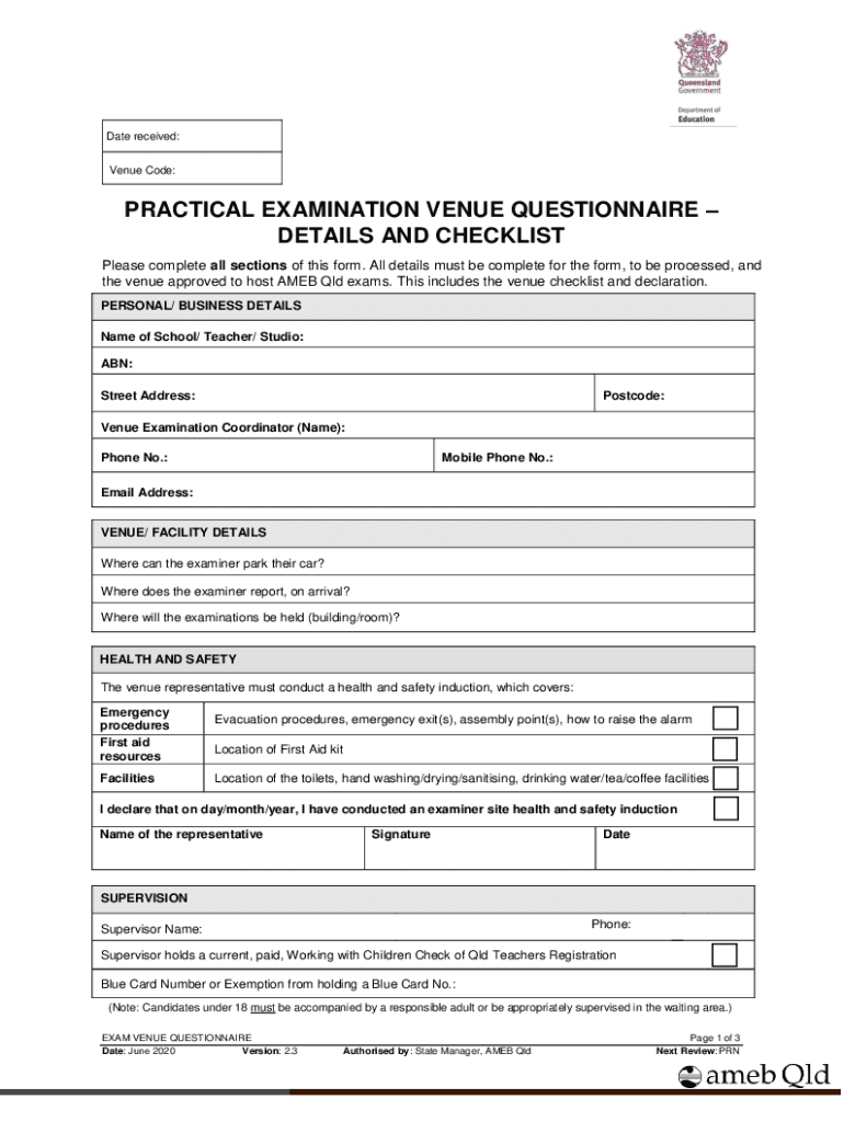 Get the free Practical examination venue checklist. Practical examination venue checklist - ameb ...