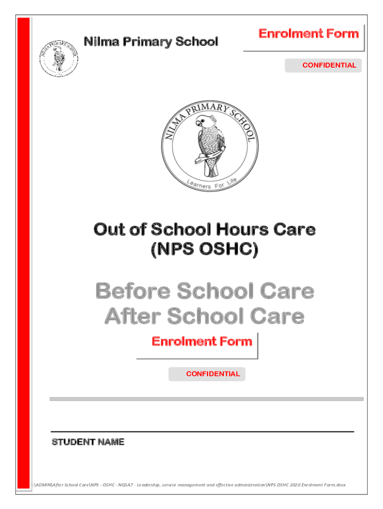 Wilma Primary SchoolEnrolment Form Confidential of School Hours Care (NPS OSHA)Before School Care After School Care Enrollment Form CONFIDENTIALSTUDENT NAME:Administer School Cairns OSHA NQSA7 Leadership,