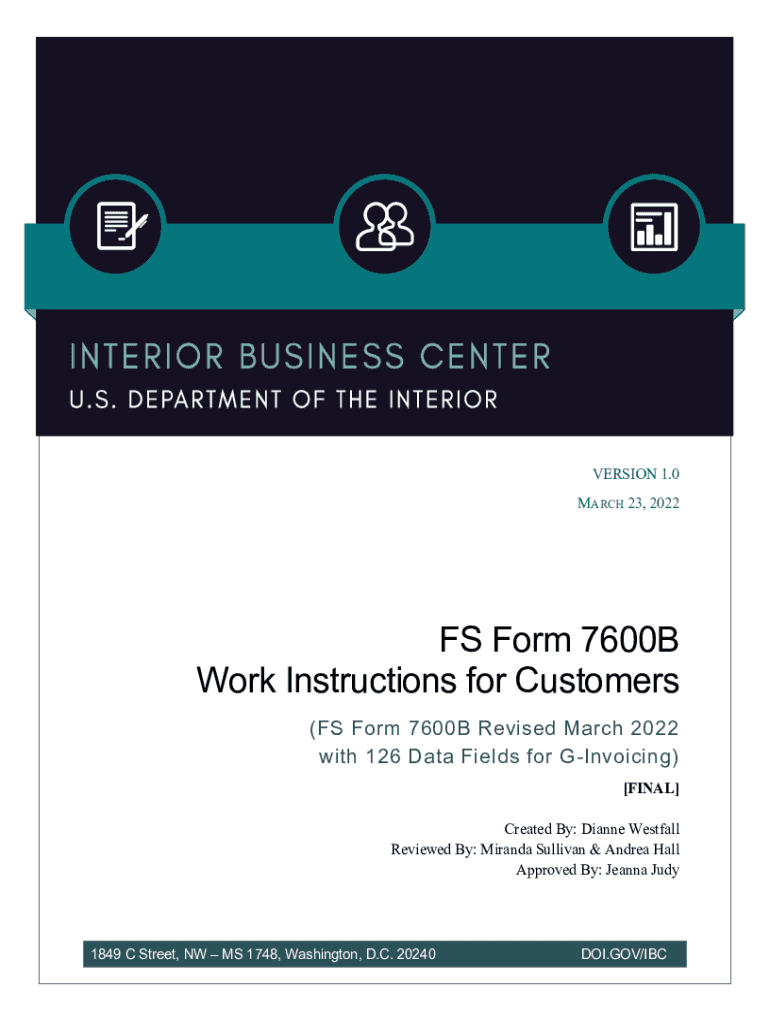 VERSION 1.0 MARCH 23, 2022FS Form 7600B Work Instructions for Customers (FS Form 7600B Revised March 2022 with 126 Data Fields for Invoicing) [FINAL] Created By: Dianne West fall Reviewed By: Miranda