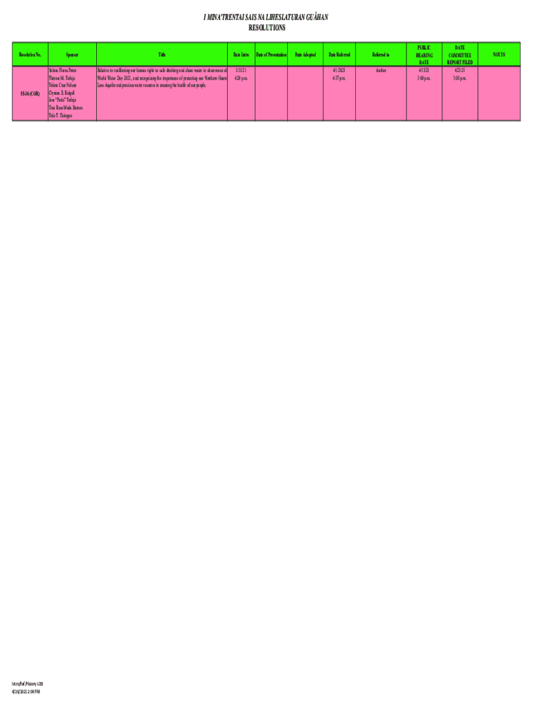 I MINA\'RENTAL SAI SNA LIHESLATURAN WUHAN RESOLUTIONS Resolution No.5536 (COR)Intro/Ref/History LOG 4/26/2021 2:04 Sponsor Sabina Flores Perez Therese M. Terrace Elena Cruz Nelson Clinton E. Ridgell