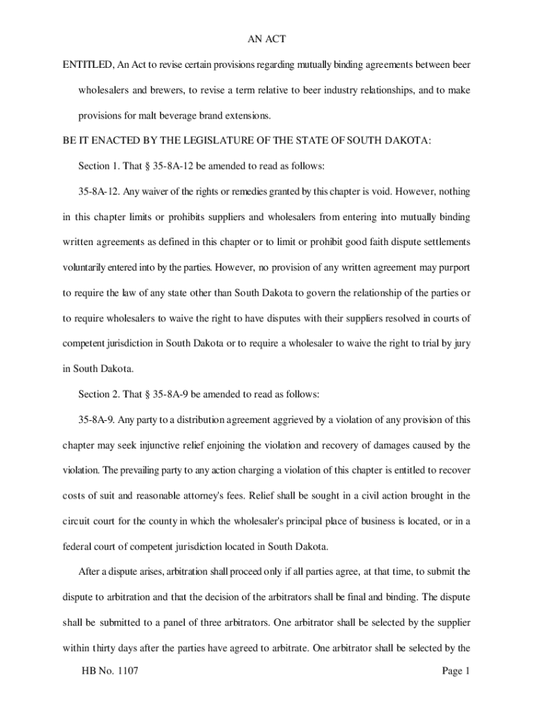AN ACT ENTITLED, An Act to revise certain provisions regarding mutually binding agreements between beer wholesalers and brewers, to revise a term relative to beer industry relationships, and to make