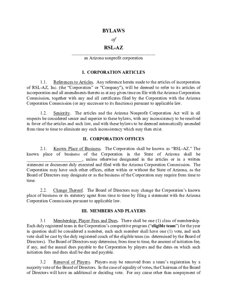 Get the free AMENDED AND RESTATED BYLAWS OF THE ARIZONA YACHT CLUB, INC.