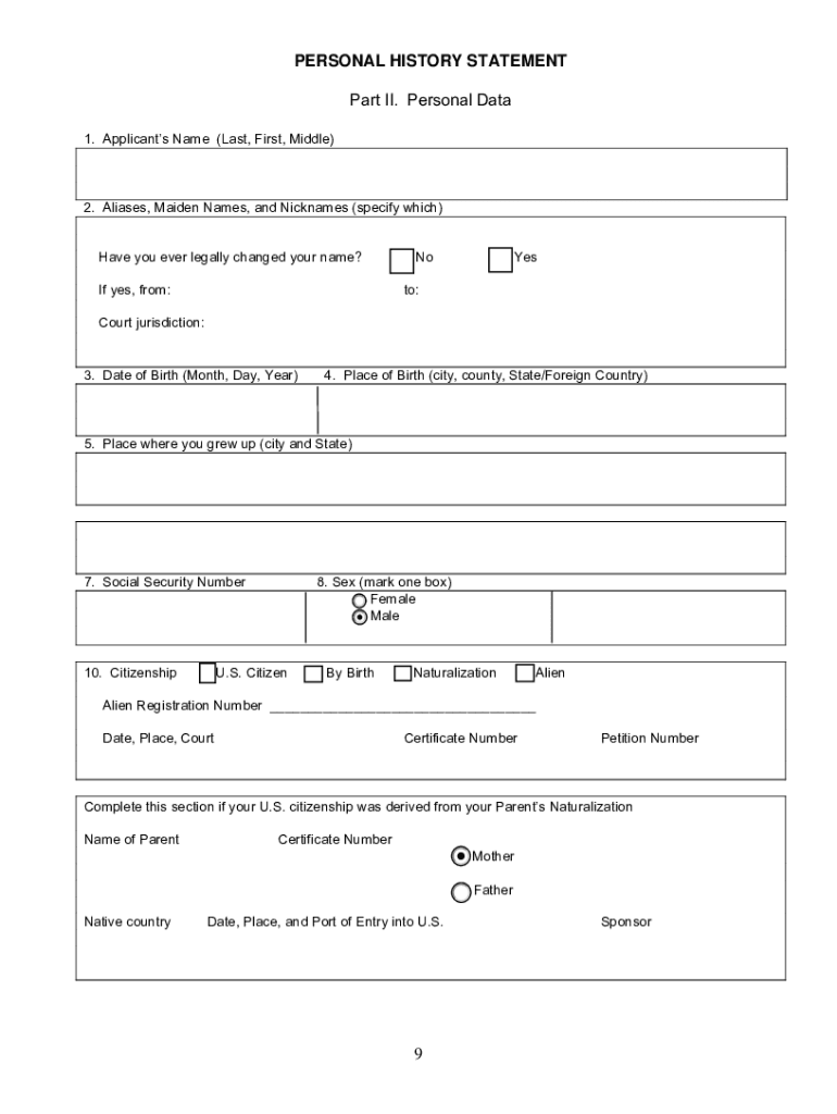 Get the free United States Park Police Personal History Statement. United States Park Police Pers...