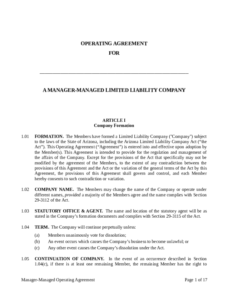 Get the free Manager-Managed-Operating-Agreement (1).pdf - OPERATING AGREEMENT FOR ...