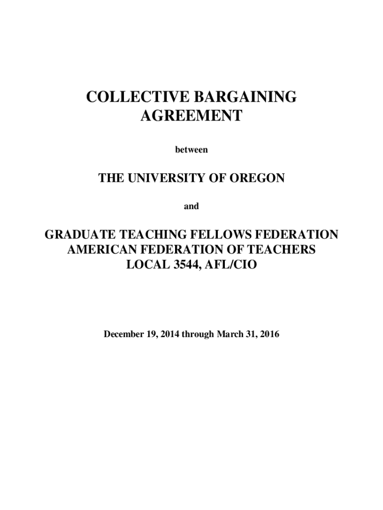 COLLECTIVE BARGAINING AGREEMENT between UNIVERSITY OF OREGON graduate TEACHING FELLOWS FEDERATION AMERICAN FEDERATION OF TEACHERS LOCAL 3544, AFL/CIO December 19, 2014, through March 31, 2016TABLE