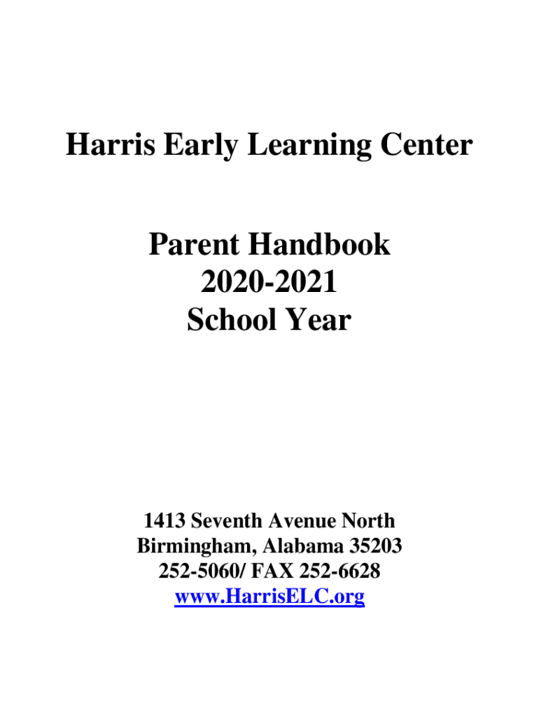 Harris Early Learning Center Parent Handbook 20202021 School Year1413 Seventh Avenue North Birmingham, Alabama 35203 2525060/ FAX 2526628 www.HarrisELC.orgTable of Contents Introduction ......................................................................................................................................3