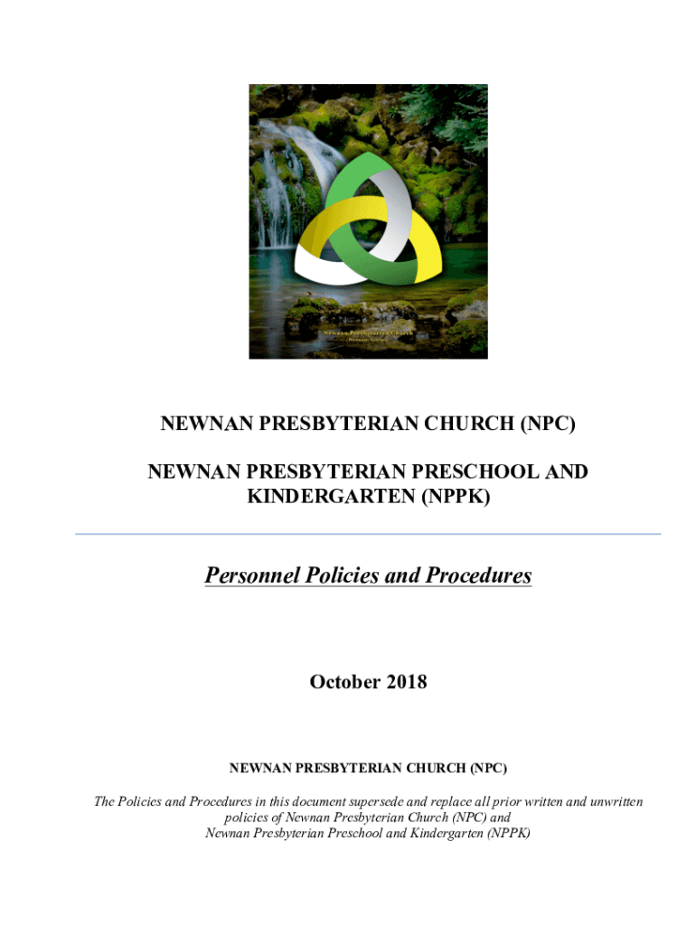 NEWMAN PRESBYTERIAN CHURCH (NPC) NEWMAN PRESBYTERIAN PRESCHOOL AND KINDERGARTEN (NPP)Personnel Policies and Procedures October 2018NEWNAN PRESBYTERIAN CHURCH (NPC) The Policies and Procedures in this