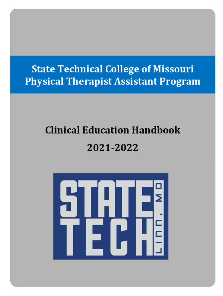 State Technical College of Missouri Physical Therapist Assistant ProgramClinical Education Handbook 20212022STATE TECHNICAL COLLEGE OF MISSOURI PHYSICAL THERAPIST ASSISTANT Programs handbook is a