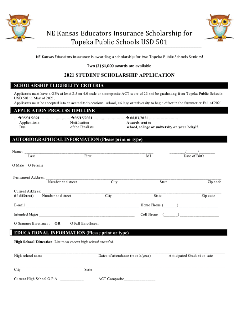 Get the free NE Kansas Educators Insurance Scholarship May 1 deadline.docx