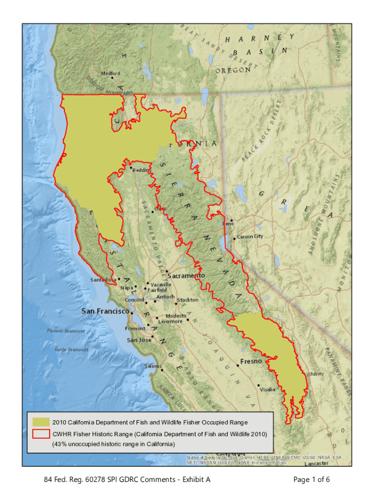 2010 California Department of Fish and Wildlife Fisher Occupied Ranger Fisher Historic Range (California Department of Fish and Wildlife 2010)(43% unoccupied historic range in California)National