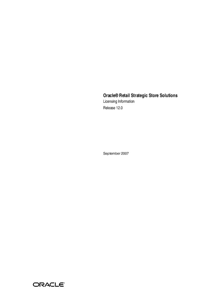 Oracle Retail Strategic Store Solutions Licensing Information Release 12.0September 2007Oracle Retail Strategic Store Solutions Licensing Information, Release 12.0Copyright 2007, Oracle. All rights