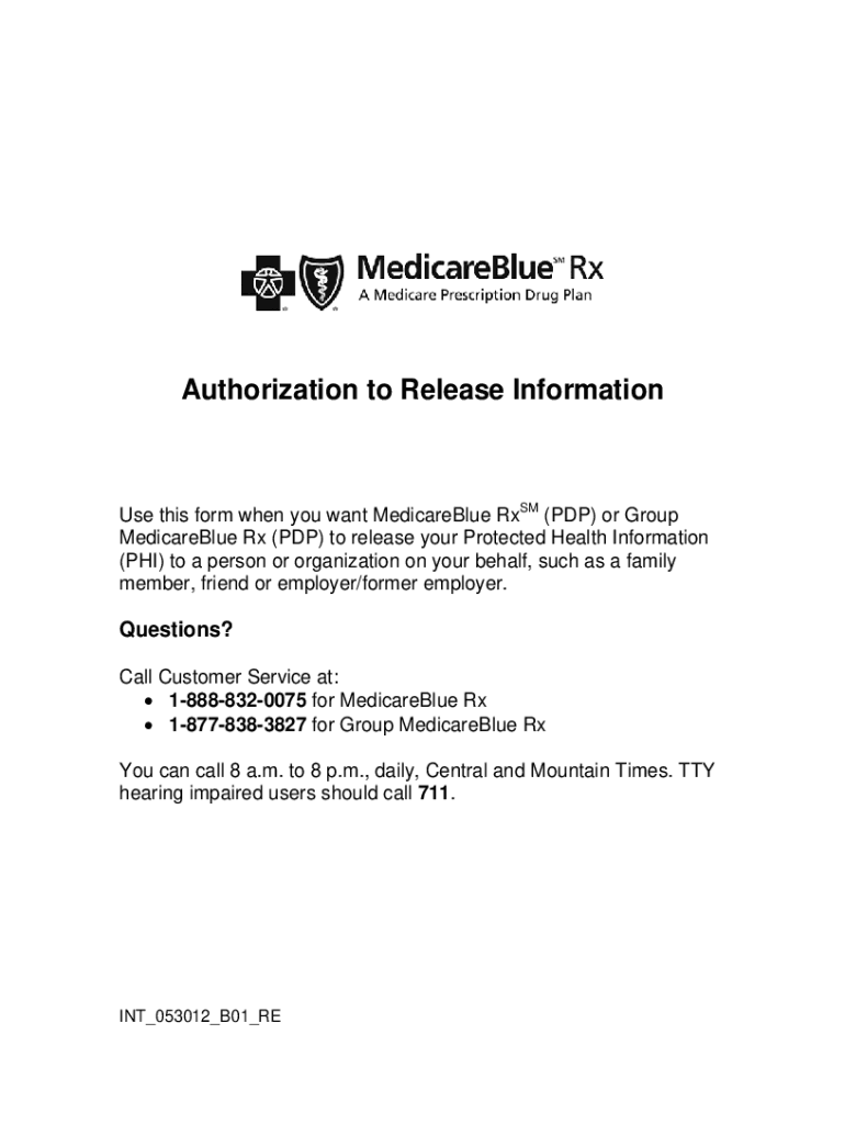 Authorization to Release Information this form when you want Medicare RSM (PDP) or Group Medicare Rx (PDP) to release your Protected Health Information (PHI) to a person or organization on your behalf,